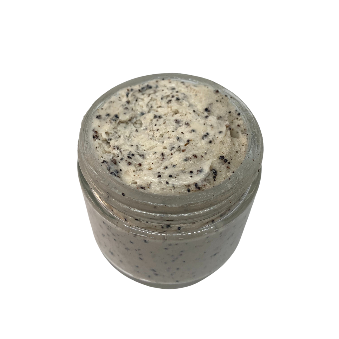 Ingredients: Coffee Grounds, Mango Butter, Shea Butter, Coconut Oil, Sweet Almond Oil, Argan Oil, Jojoba Oil, Aloe Extract, Vitamin E, Fragrance Oils